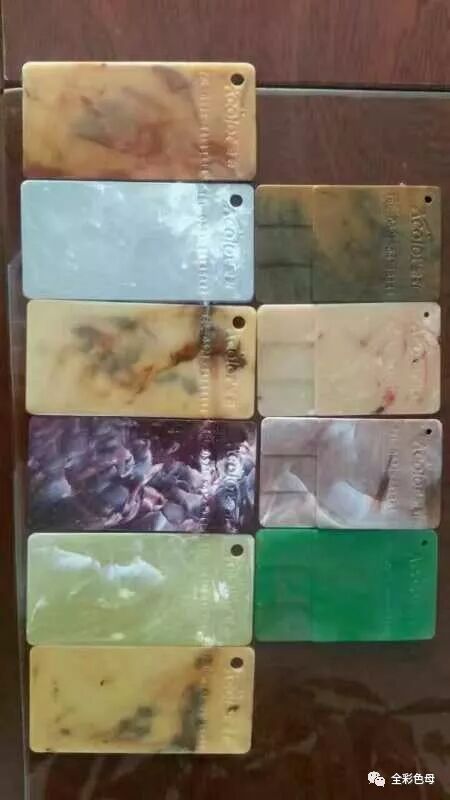 4、大理石纹色母系列:适用于ABS,PP,PE,PS等原材料,仿大理石塑料装饰产品,塑料首饰工艺品。。。