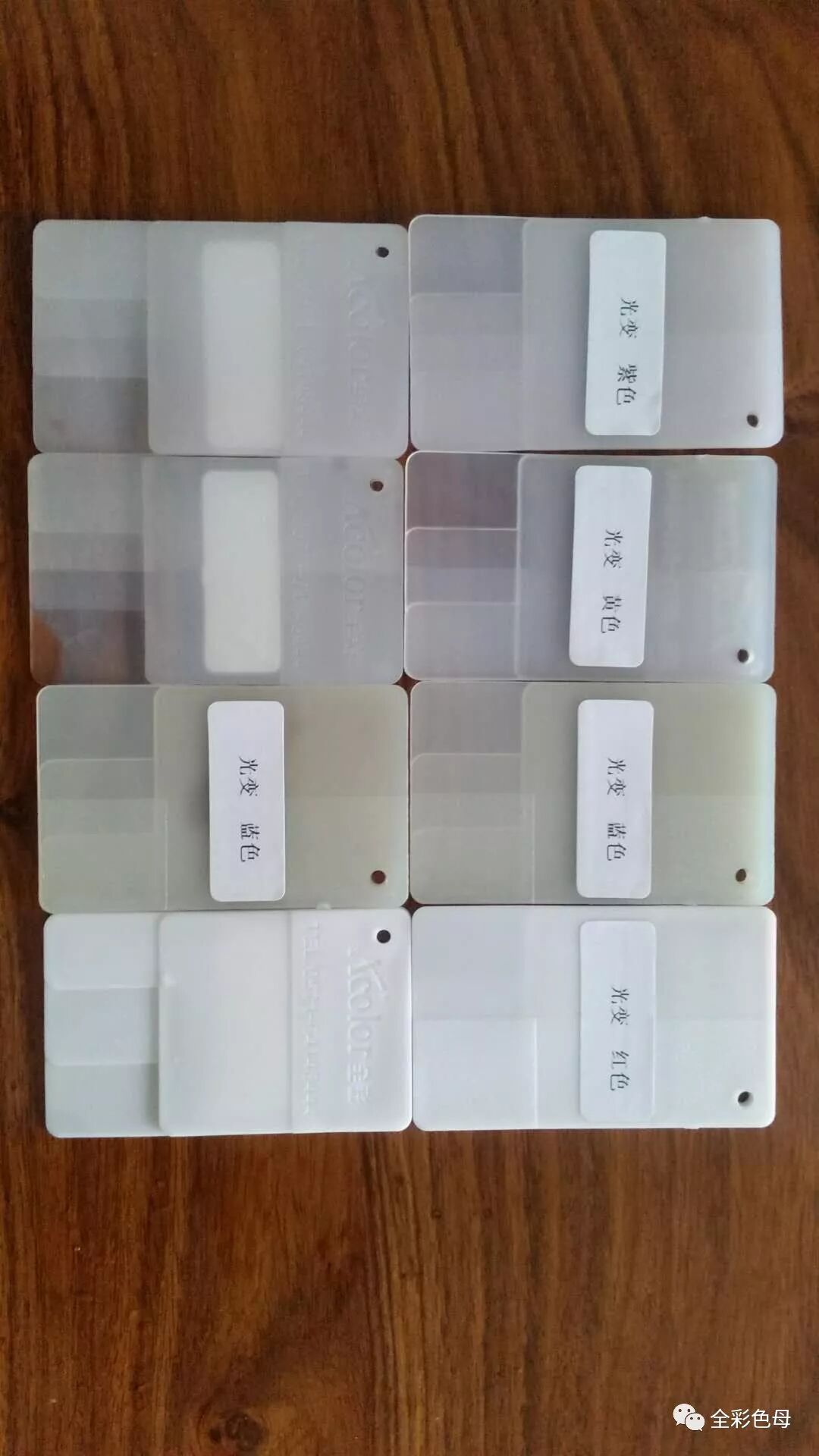 3、光变色母系列:室内一个颜色,太阳光下会变色,紫外线光强照射会显示不同颜色。